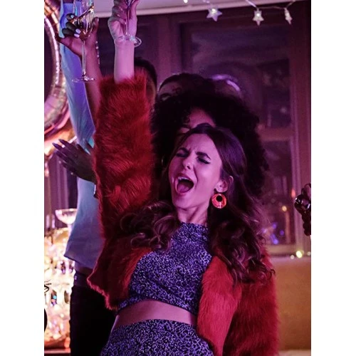 Victoria Justice Afterlife of the Party Cassie Red Fur Jacket