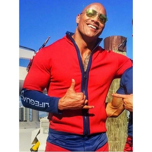 Yes, talking about the Baywatch Dwayne Johnson jacket the perfect blue and red.
