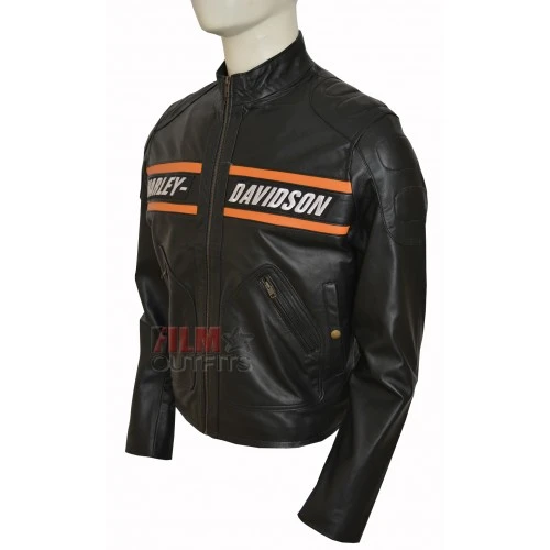 the front. The Orange and Black Harley Davidson Jacket has been finely stitched