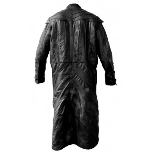 The coat is made from extreme quality of leather material. It is a long leather coat with a wider bottom. The front is fastened unique . It has a small stand