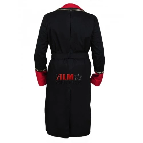 attractive long jet black and red coat has been inspired by the game Warhammer
