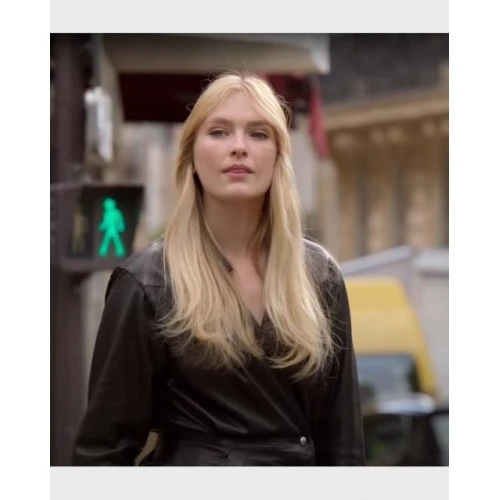 Camille Razat TV Series Emily in Paris S02 Camille Black Leather Coat