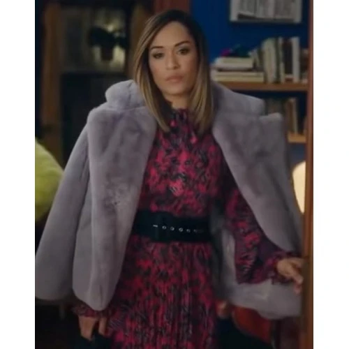 Grace Byers Harlem 2021 Quinn Fur Purple Jacket