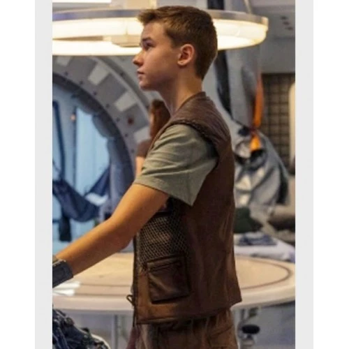 Maxwell Jenkins Lost in Space Will Robinson Brown Leather Vest