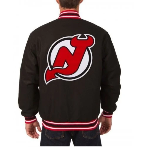 New Jersey Devils Varsity Bomber Black Wool Jacket