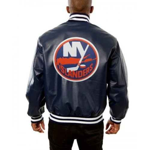 New York Islanders Varsity Bomber Navy Blue Leather Jacket