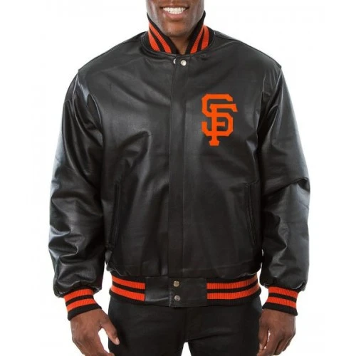 San Francisco Giants Varsity Bomber Black Leather Jacket