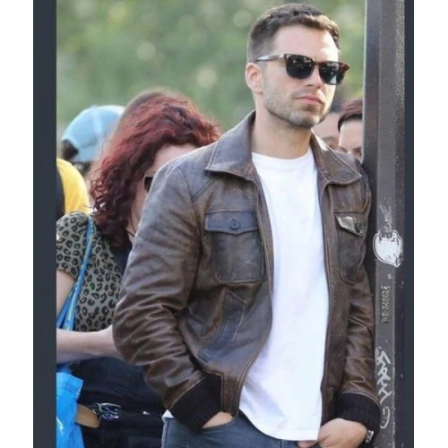 The 355 Sebastian Stan Brown Bomber Leather Jacket
