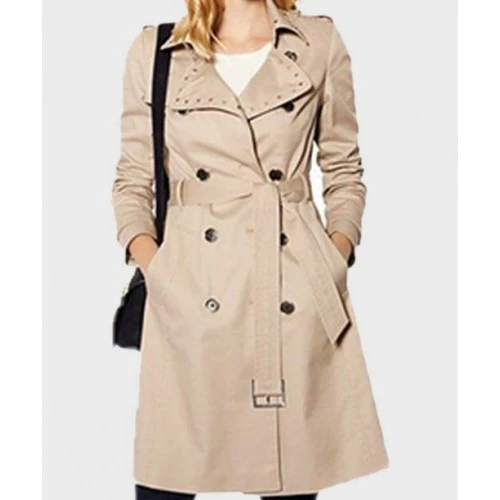 Beautiful Caroline Spencer Beige Trench Coat has a front button closing