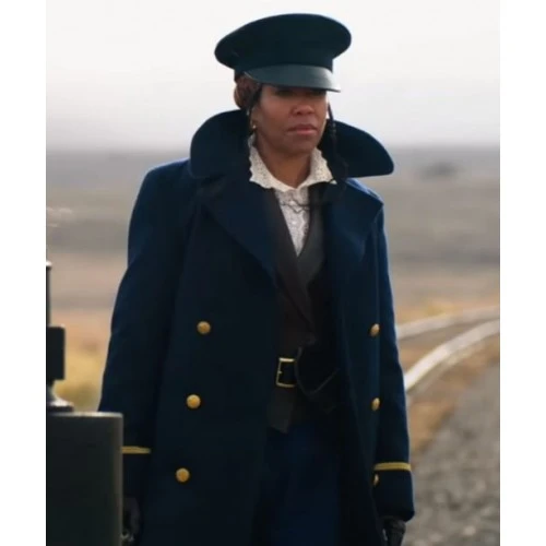 Trudy Smith Double-Breasted The Harder They Fall (2021) Regina King Blue Trench Coat