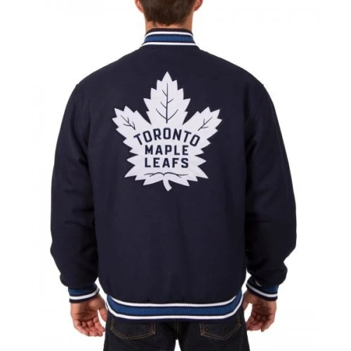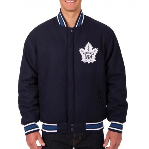 Toronto Maple Leafs Varsity Bomber Navy Blue Wool Jacket