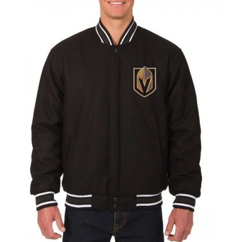 Vegas Golden Knights Varsity Bomber Black Wool Jacket