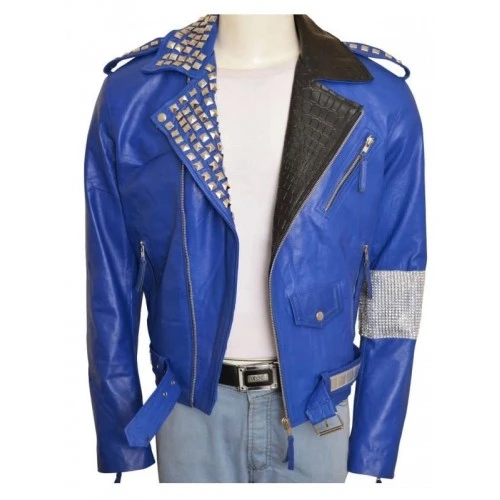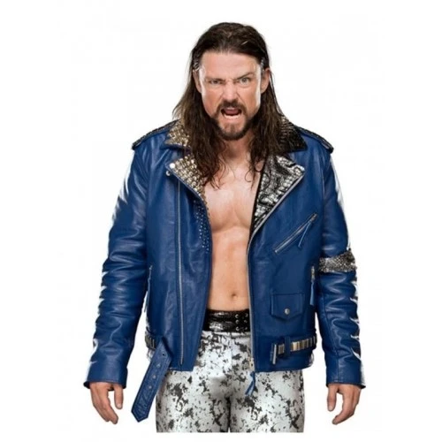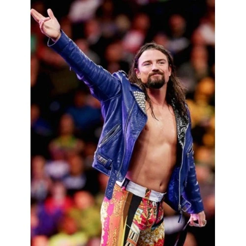 WWE Superstar Brian Kendrick Blue Studded Motorcycle Jacket