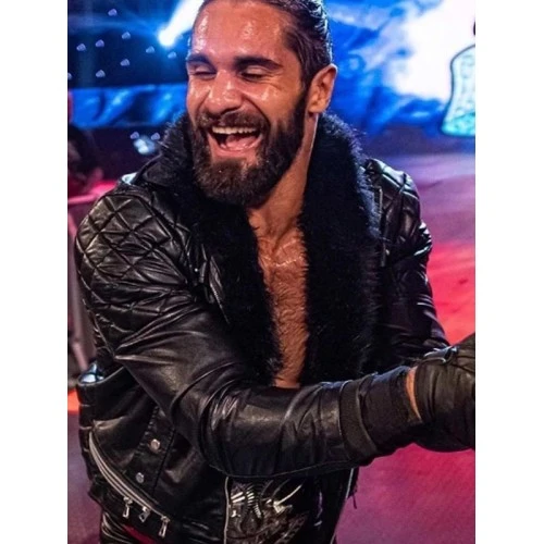 WWE Superstar Seth Rollins Fur Collar Black Leather Jacket