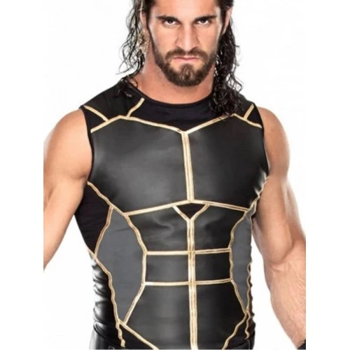 Seth Rollins WWE Black Slimfit Leather Vest