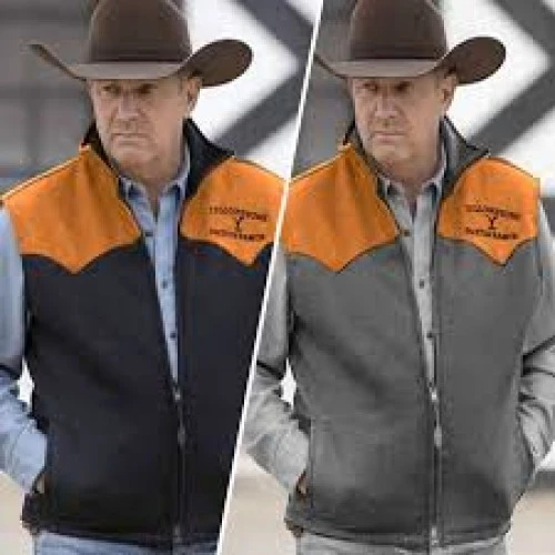 Because it comes in stunning black color, but can be customized in color of your choice, for our valuable customers. The internal side of Kevin Costner Yellowstone John Dutton Custom Design Vest is covered with viscose fabric lining, and the external side, made from cotton or wool material, according to your choice. An orange color panel, present on the shoulders along with the Yellowstone logo on the chest. A YKK zipper closing feature that’s featured on the frontage, reaches upwards to the level of a stand up style collar. Two zipper pockets are situated on the waist beneficial in securing the valuables to keep the hands free. Buy it before any of your friends!